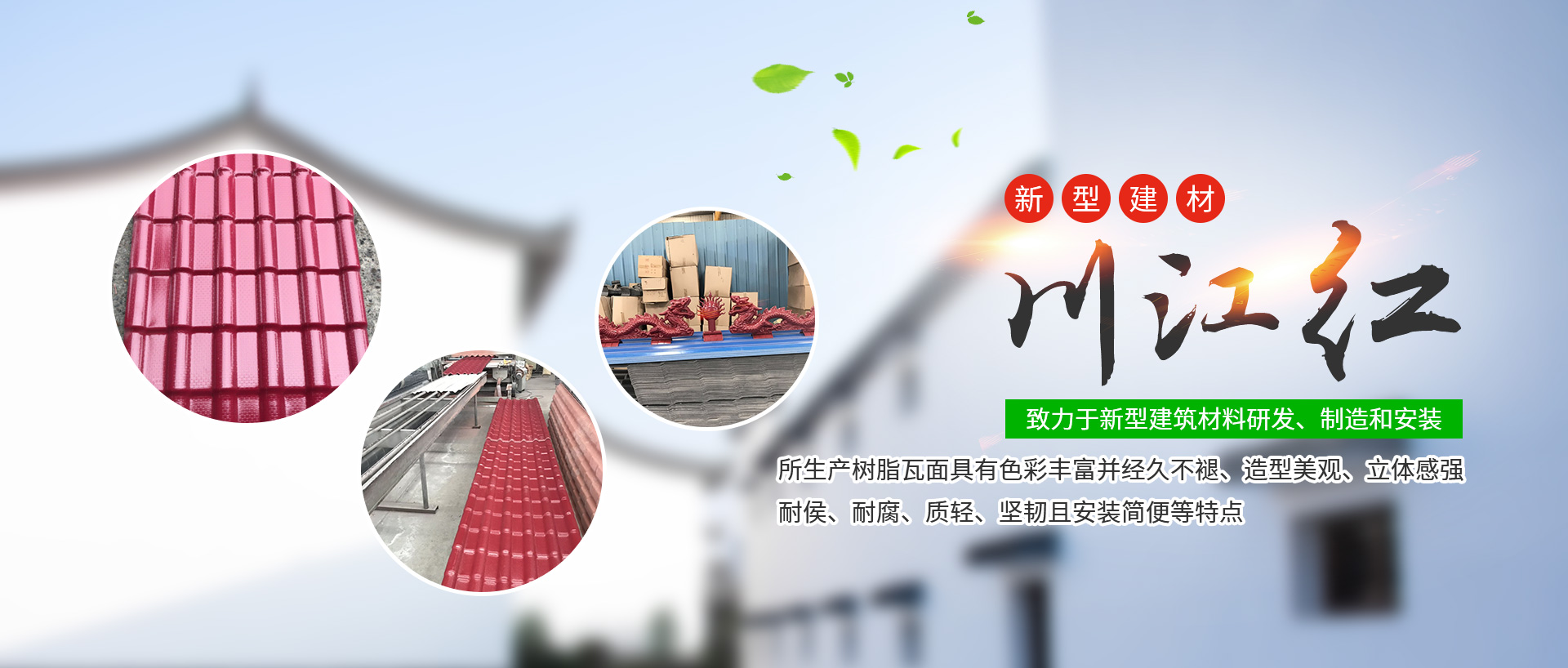 成都川江紅新型建材有限公司是2011-03-16成立,是西南領先合成樹脂瓦制造商,主要從事四川合成樹脂瓦、成都合成樹脂瓦的研發銷售。位于成都市西南航空工業港,是一家以科技為先導,致力于新型建筑材料研發、制造...